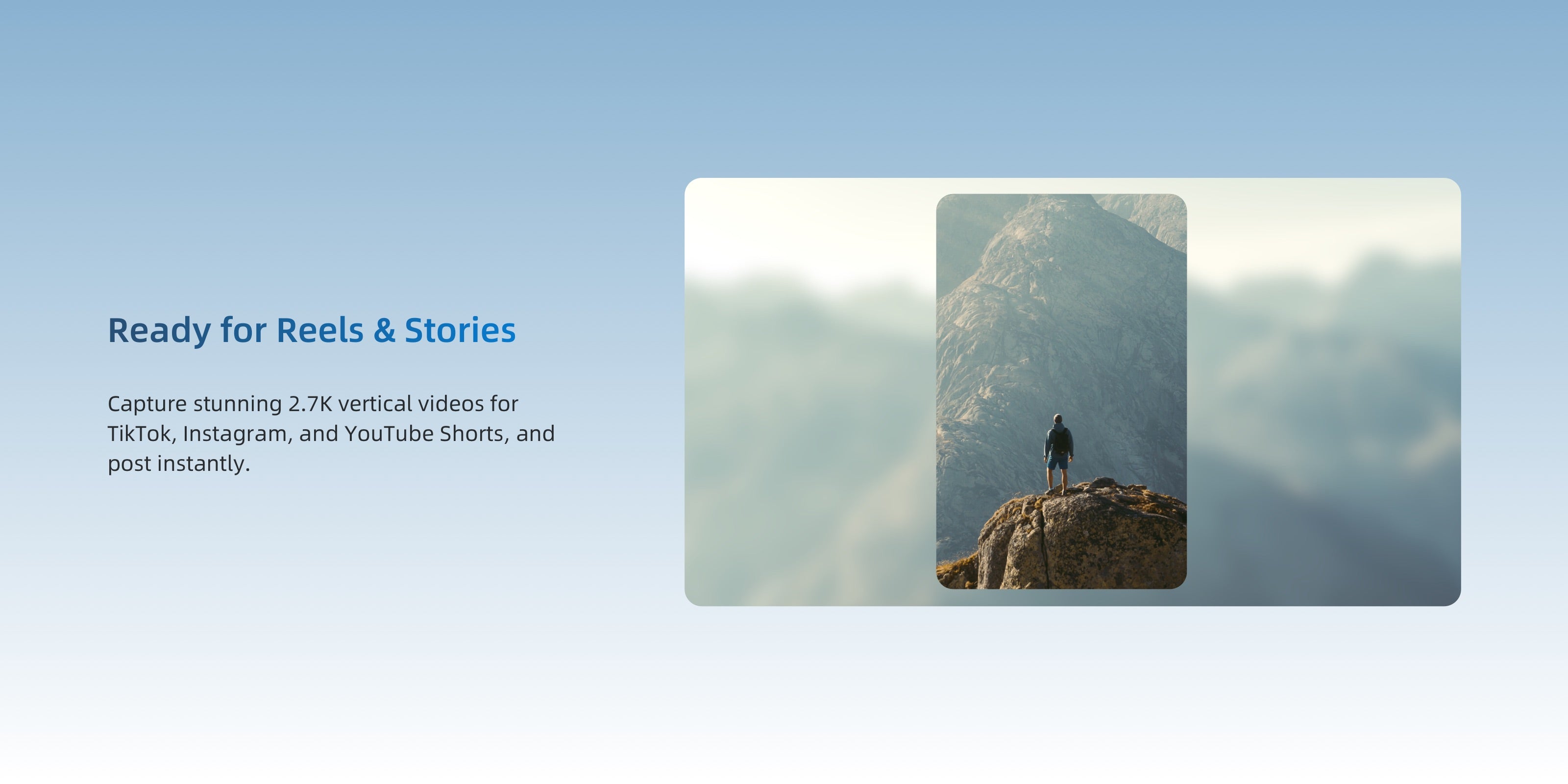 Create content ready for TikTok and Instagram instantly. The SKYROVER S1 supports 2.7K Vertical Shooting, allowing you to capture full-screen vertical footage without cropping. Share your aerial adventures directly to social platforms with high-resolution vertical framing that stands out on mobile screens.